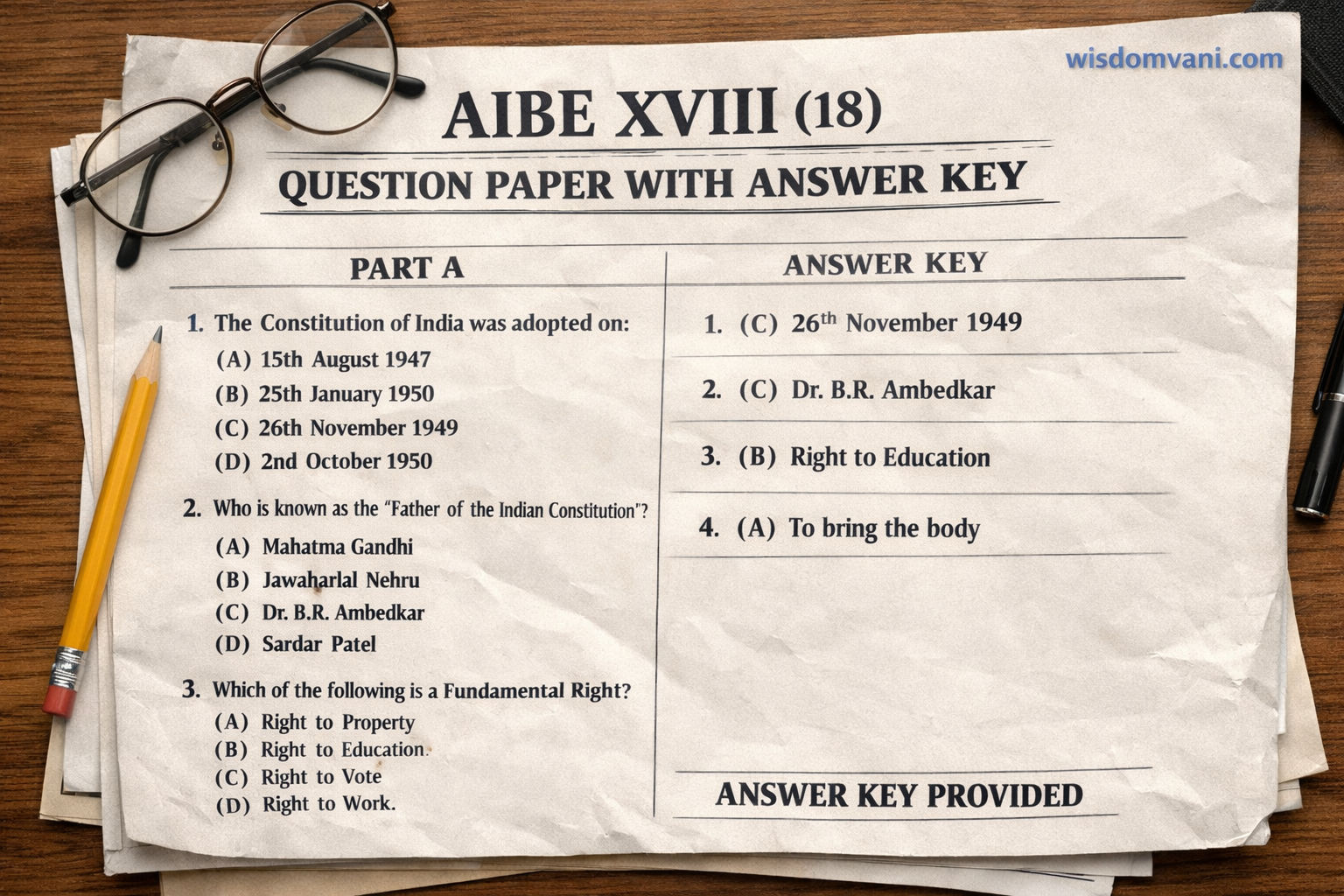 Looking for the AIBE XIX (19) 2024 question paper? Access the full PDF along with the verified answer key. This guide provides a section-wise breakdown of the exam, helping law graduates understand the marking scheme, difficulty level, and key topics required to clear the Bar Council of India’s certification exam.