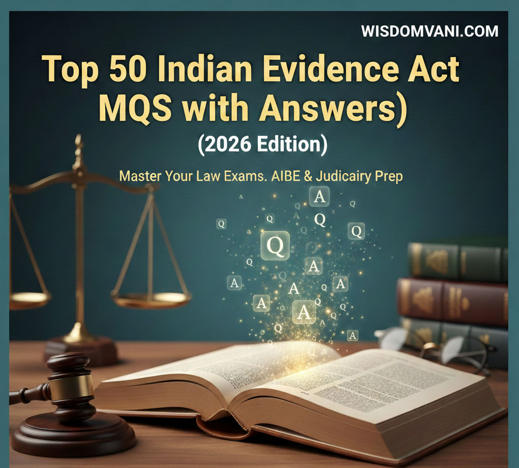 Looking for a quick revision of the Indian Evidence Act, 1872? This post features 50 handpicked Multiple Choice Questions (MCQs) covering essential sections like Res Gestae, Dying Declaration, and Burden of Proof, specifically designed for upcoming legal competitive exams and the AIBE.